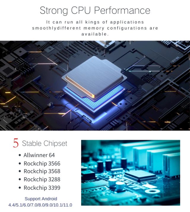 1. CPU: A64/A133/RK3566/RK3288/ RK3568/RK3399